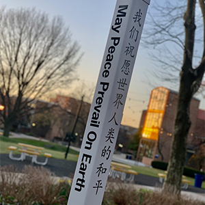 A student-driven project came to fruition in April 2022, with the installation of a Peace Pole, located on the edge of Hansen Quad near College Hall and the De La Salle Chapel. Intended as a spot for campus reflection, the peace pole features the message “Peace will prevail” in multiple languages commonly spoken on campus. They include English, French, Spanish, Russian, Swahili, Arabic, and Mandarin Chinese.