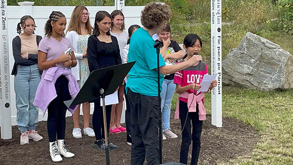 This year’s dedication was the first one since the pandemic. Highlights of the ceremony included Norwich middle school students reading essays about peace, reading the peace pole by people who speak some of the non-English languages, and Jennifer Hubbard, president of the Catherine Violet Hubbard Animal Sanctuary, donating local plants from the sanctuary’s pollinator garden to help create a pollinator garden at the Peace Pole.
