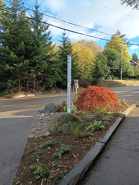 We now dedicate the “Fauntleroy Creek Crossing Peace Pole” as a symbol of peaceful crossing and to honor this sacred spiritual connection with the land and water. We hope you will pause here from time to time to reflect on the role that you can play to foster peace in our community, our country and our world.