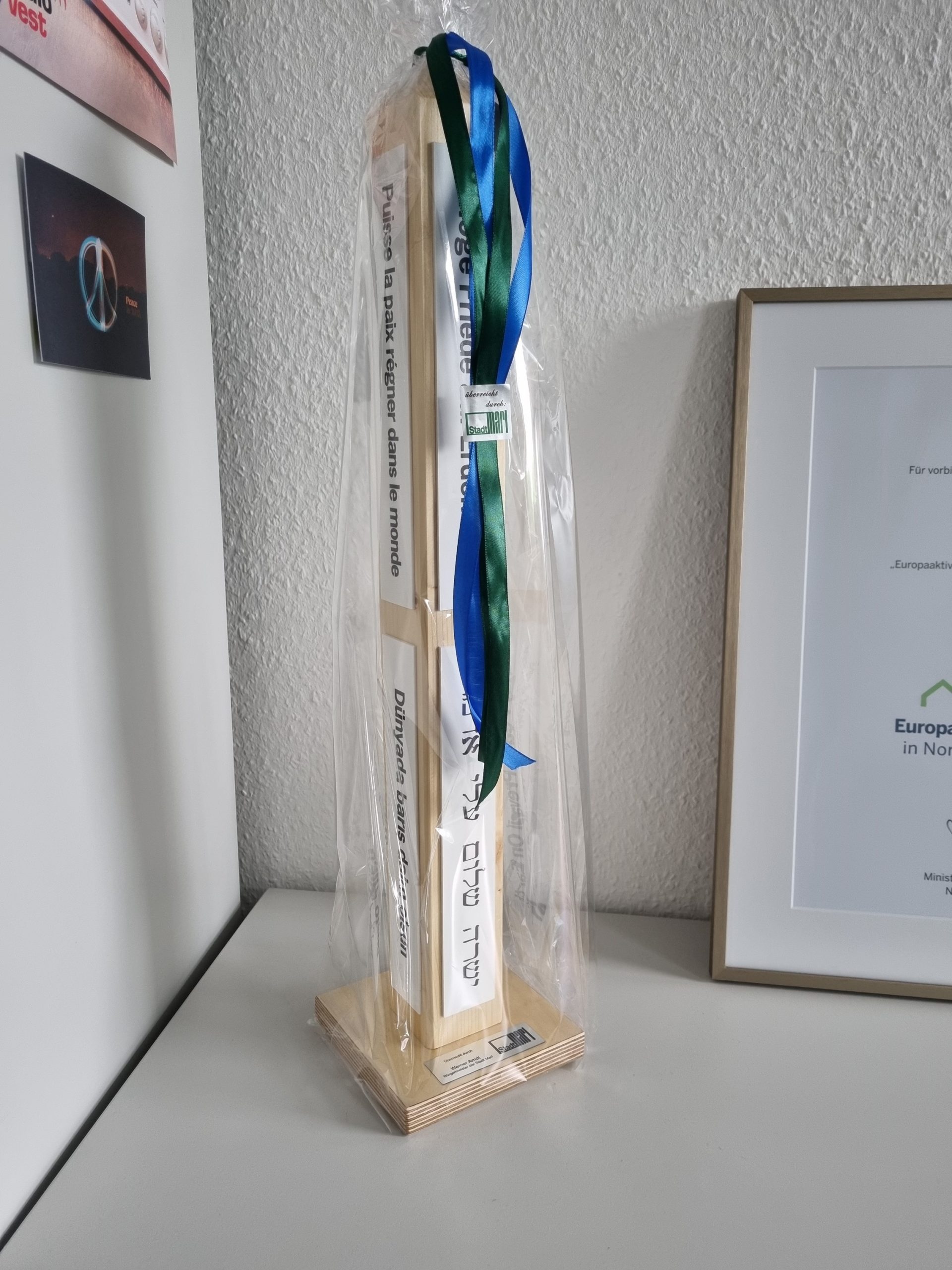 What I truly love is that Marl created their own desktop Peace Poles to gift to the representatives of Marl’s twin towns in Turkey, UK, Poland, Hungary, and Germany.