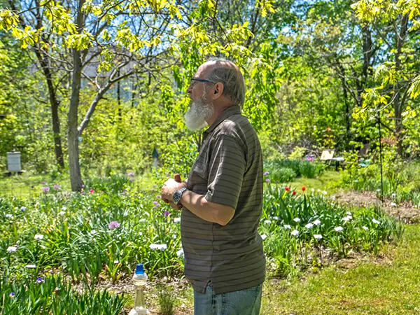 Rod Maust stands in his yard, at his Herron-Morton Place home where he lives with his wife, Martha Yoder Maust.
