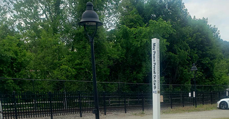 Peace Pole planted next door to Auschwitz at the One Humanity Institute in Oświęcim, POLAND