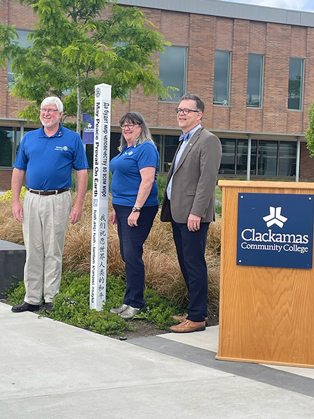 Rotary plants Peace Pole at Clackamas Community College, Oregon City, Oregon-USA