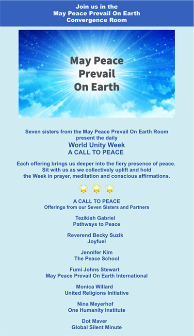 May Peace Prevail On Earth stewarded the May Peace Prevail On Earth Convergence Room where online zoom programs were hosted throughout the week.