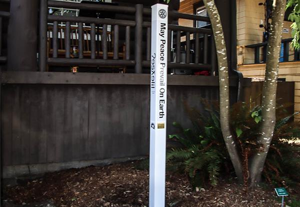 New at the Log House Museum: The sixth Peace Pole installed in the area by the Rotary Club of West Seattle Washington. It’s in the garden space in front of the historic log house.