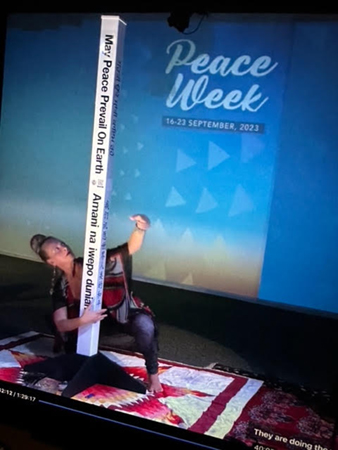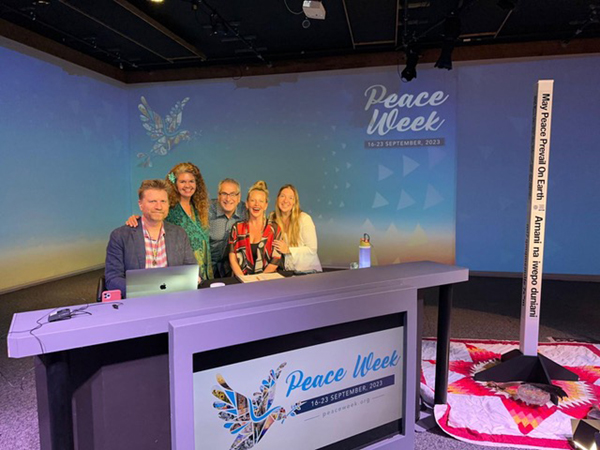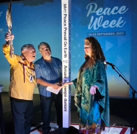 To open Peace Week a Peace Pole was dedicated at Hub Cast Studios in Canada who hosted the global online production for the week. The Peace Pole was blessed by Hereditary Chief Phil Lane Jr followed by music and a dance performance by Sommer Ramer of the Sine Network.