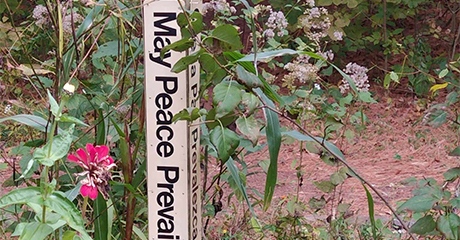 October – 2023 Revived wooden Peace Pole, has been updated with new aluminum language plates bearing the universal peace message in four languages. Submitted by: Monika Sternecker