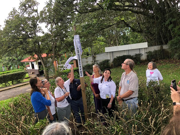 A total of three Peace Poles were dedicated during the Co Creators Convergence which took place late in October 2023. The first Peace Pole was dedicated with a World Peace Flag Ceremony at the University of Peace in Ciudad Colon outside of San Jose on October 23rd. We prayed for peace in all nations, lands and indigenous regions on the grounds of the University. The weather was bright and clear when we started the Flag Ceremony however, as we began to pray for the Middle East, the skies clouded up and rain gently joined our tears. At the conclusion of praying for the Middle East the skies miraculously cleared once again. The vortex accelerated literally and figuratively and some even found themselves in altered states.