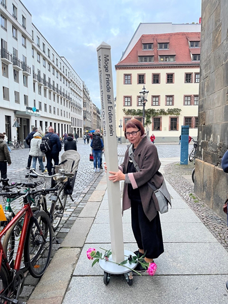 Peace Pole that travels with ‘Schools on the Move’ center of Leipzig, Eastern GERMANY