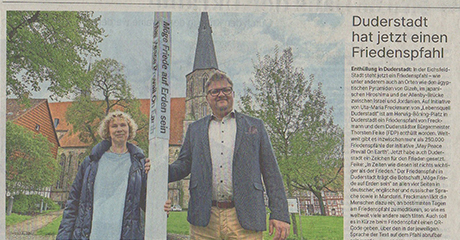 April 18, 2024Worldwide there are more than 250.000 Peace Poles an initiative of “May Peace Prevail on Earth”. Now Duderstadt joined and set an example for peace. In these times,…