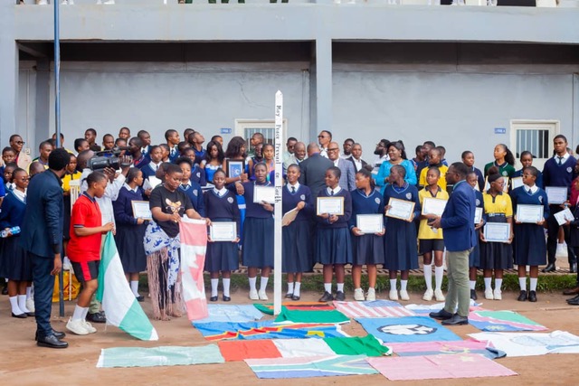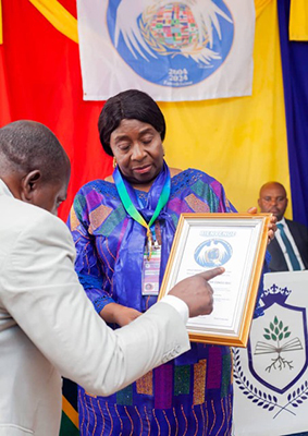 The Peace Pole was dedicated in the presence of 52 students of the Royal International Academy and Peace Award Certificates were presented to Kalau Kapend Paulin, Minister of Culture and the Arts, Madame Masoji-Malichi Angèle.