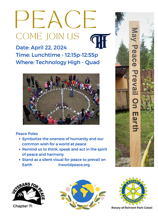 Peace Poles for Peace-Technology High School, Rohnert Park, California – USA
