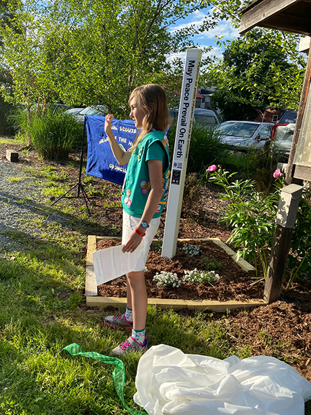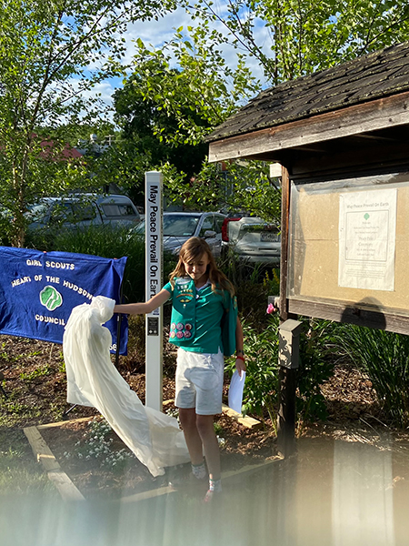 Girl Scout Troop 356 of Sullivan County, NY unveiled a “Peace Pole” at Callicoon Creek Park on Thursday, May 30, 2024. The four-sided peace pole features the message, “May Peace Prevail On Earth,” in four different languages – English, Spanish, French and American Sign Language. It also includes a brail plaque.