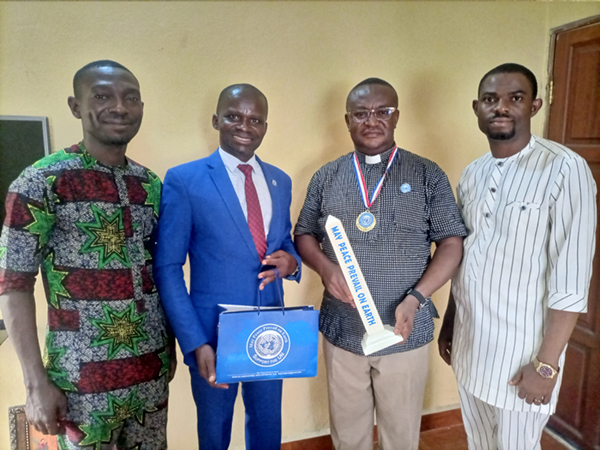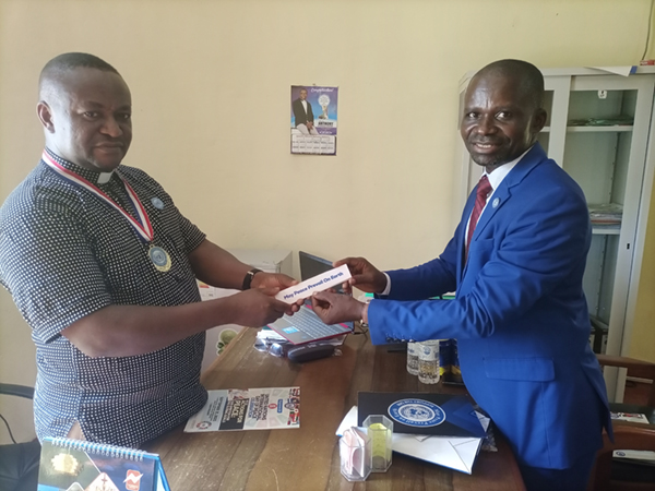 We visited the Uyo Catholic Diocese Secretariat and presents a Desktop PEACE POLE to the Chancellor of the Diocese Rev Fr Dr Charles Ekeng as Ambassador of Peace. Also presented to him was Peace Stickers, Medal and Peace Button with the message “May Peace Prevail on Earth”.