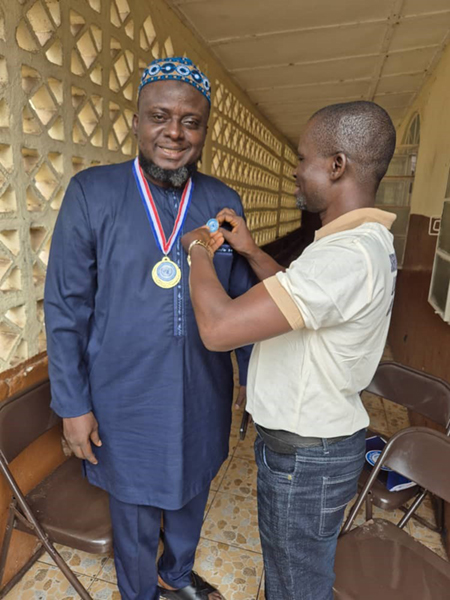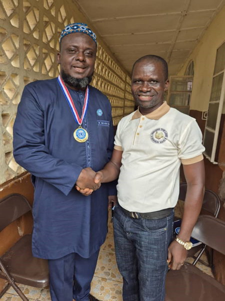 The Sierra Leone Peace Representative Mr. Bockarie Enssah who is doing great work in his country was decorated as Peace Ambassador by his Nigeria counterpart Mr. Mojima Etokudo with Peace Medal, Peace Botton, and Peace Stickers. The brief ceremony took place at Freetown the capital of Sierra Leone.