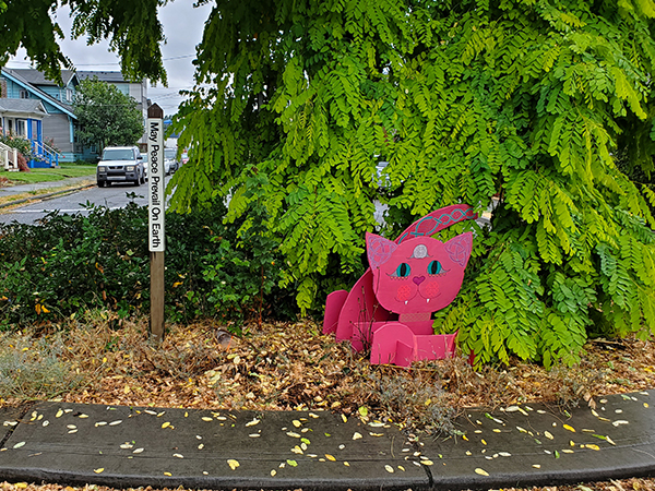 Peace Pole next to Airbnb in Georgetown neighborhood, Seattle Washington, USA