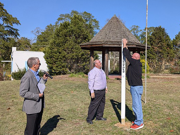 Simpson and Mayor Parnell Vann installed the Peace Pole together.