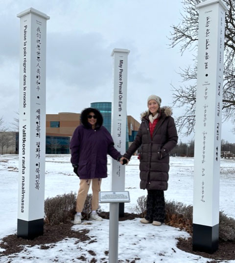 Barbara’s daughter, Dr. Patricia Ann Talley is a Peace Representative in Mexico where she resides and promotes the message May Peace Prevail On Earth in Zihuatanejo and beyond.  She helped to organize the 40th annual MLK Day program this year and together with Fumi Johns Stewart, executive director of May Peace Prevail On Earth International who attended the event, walked out to take a photo around the Peace Poles.