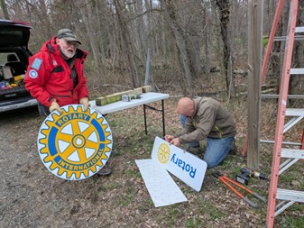 These signs have been upgraded with the new Rotary logo and transformed into a Peace Pole.