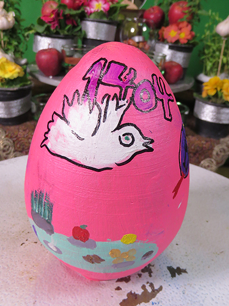 Eggs are painted in the most beautiful way possible and placed on the table. This year, at Nikoo Pendar Educational Center, the eggs were designed with the theme of peace and the symbol of the Year of the Snake in the hope that peace will be established in the world.