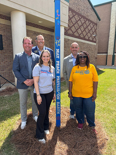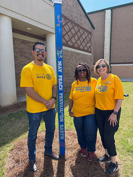 The Rotary Club of North Cobb, in collaboration with the Rotary Club of Winder and the Barrow Area Rotary Club, all in Georgia, USA, planted a Peace Pole at Apalachee High School.