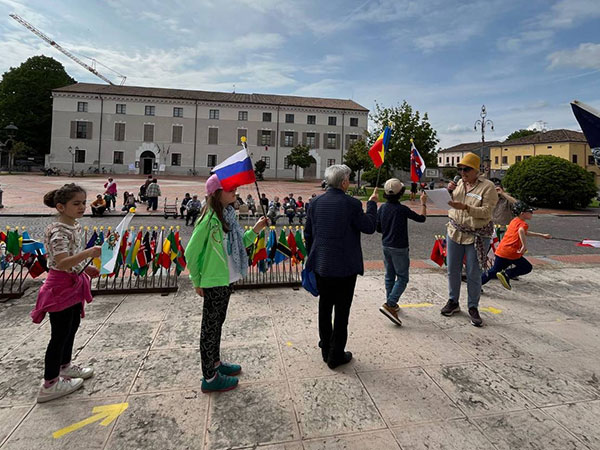 The members of the cultural association Civiltà da Abitare and I, as representatives in Italy of May Peace Prevail On Earth International, collaborated to create a beautiful Peace Day together with the children and families of Quingentole and others who joined from nearby towns.
