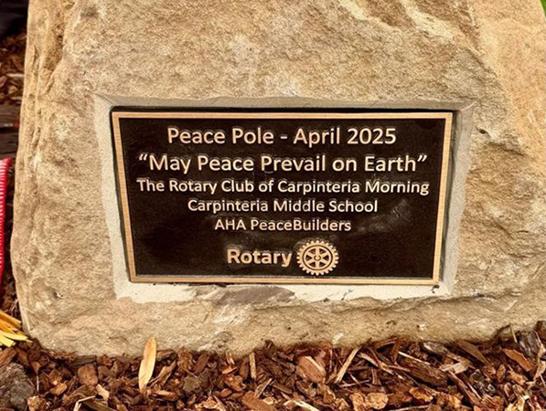 The Rotary Club of Carpinteria Morning dedicated a Peace Pole at Carpinteria Middle School (CMS) last Wednesday, April 30 — a project envisioned by former club President Carie Smith two years ago.