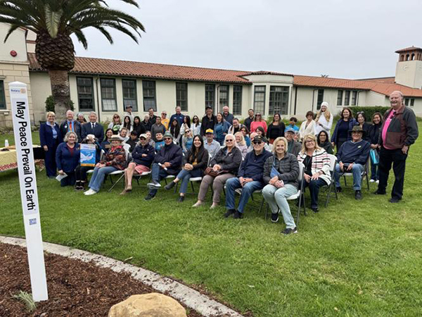 The ceremony was attended by 50 community members, including members of both Rotary clubs, as well as local officials, International Rotary members, CMS Principal Jamie Persoon and Vice Principal James Anderson. Rotary District 5240 Peacebuilder Committee Co-Chair Art Fisher emceed, and Chumash Elder Julie Tumamait-Stenslie offered the Peace Pole a Chumash blessing.