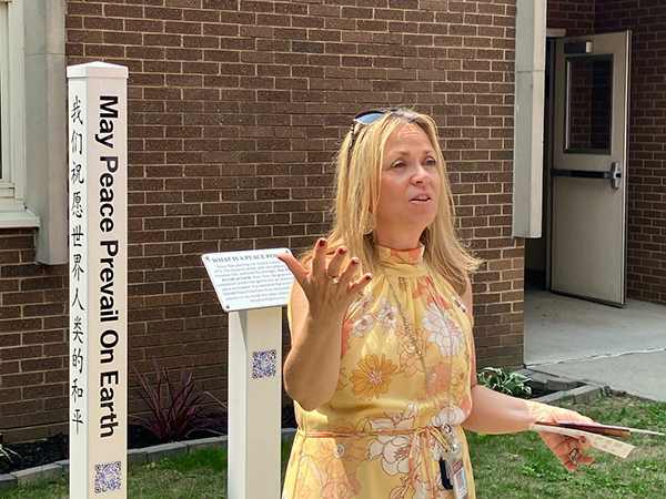 Members of Patchogue-Medford High School’s Interact Club and Multicultural Heritage Club and the Rotary Club of Patchogue, on Wednesday, June 4, dedicated a peace pole in an outdoor courtyard.