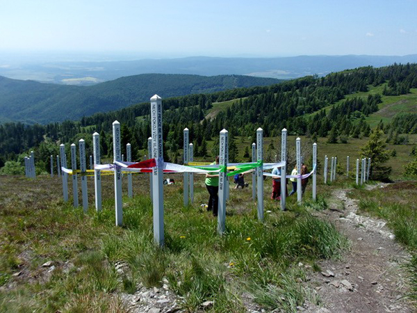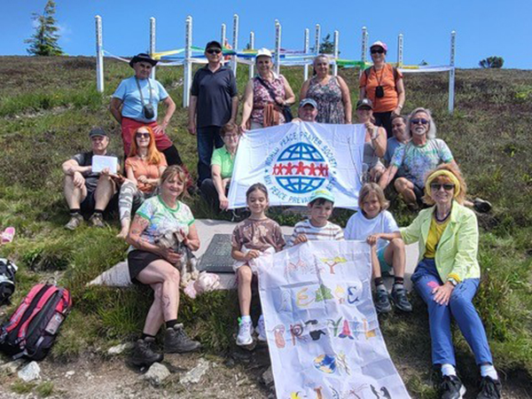 May Peace Prevail On Earth International, Peace Representative, Klárka Darchan Hodnicova of Kosice, Slovakia gathers with family on Father’s Day atop Peace Mountain she founded in 1995.