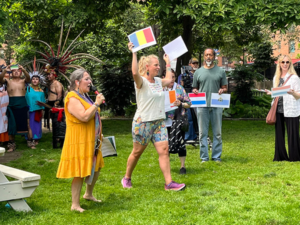The Summer Solstice was celebrated at Corlear’s Hook Park steeped in a tragic history of colonization and disconnection which wounded the spirit and ancestors of the land.  This area in lower Manhattan witnessed Kieft’s War and the massacres of the Lenape people robbing them of their land and culture. Four centuries later, a ceremony of remembrance and renewal was hosted by our peace community on this very spot as a profound act of healing.