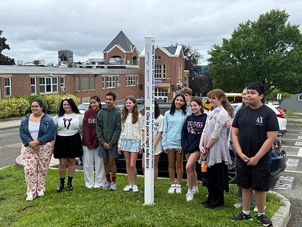 Inspired by an article in the international Rotary magazine and surprised to learn that Westchester County had none, Alami brought the idea to her Rotary Club in the summer of 2024. With support from Superintendent Dr. Ray Sanchez, Assistant Superintendent Brian Fried, and fellow Rotarians, the ten-month project came to fruition on May 29, when the first Peace Pole was dedicated in a heartfelt school ceremony.