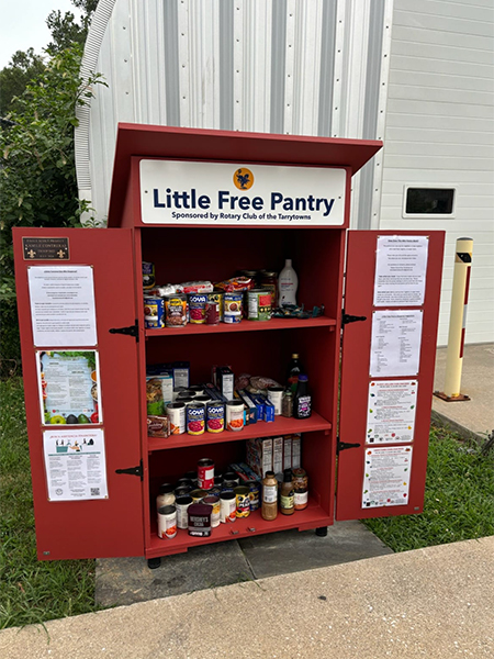 Beyond the Peace Pole project, Alami is also the driving force behind the Little Free Pantry initiative, which she launched in 2023 with the Rotary Club. Located near Village Hall in Tarrytown and the Senior Center in Sleepy Hollow, the pantries are open 24/7 and stocked weekly with food, hygiene items, books, and small toys. “We check them a few times a week to restock and clean,” she said. “Sometimes, a little thing like a toothbrush or a snack can really make someone’s day.”