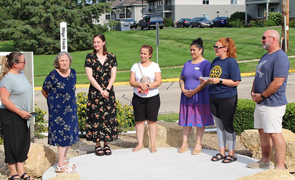 Waunakee community members joined the Waunakee Neighborhood Connection and village staff to dedicate the Rotary Peace Pole on July 29, while celebrating the new, more welcoming South Street site.