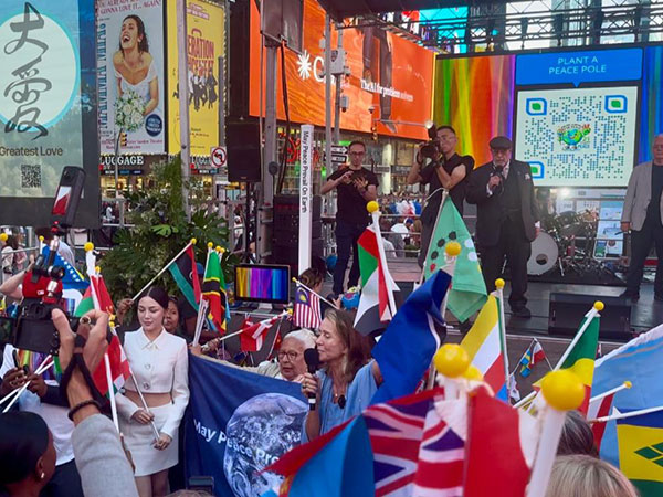The following day, Times Square transformed into a hub for peace, unity, and action. Participants joined MPPOEI, the Global Silent Minute, and community partners to “plant” virtual Peace Poles on the world map at plantpeace.worldpeace.org, each inscribed with personal messages for peace.