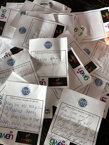 Participants wrote their thoughts of peace on paper and placed them on the Peace Pole, and before the establishment, there was a meditation where each person shared “the place, person, situation you want to send peace to at this moment.” Afterwards, they all chanted “May Peace Prevail On Earth” for Humanity in the World, and united the thoughts of the participants.