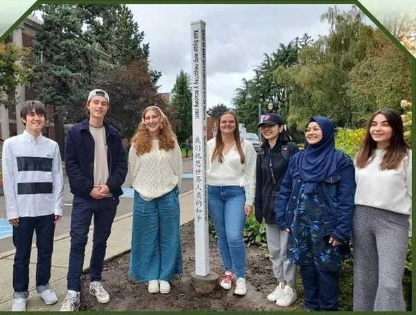 A Peace Pole is a monument that displays the message “May Peace Prevail On Earth.” The Peace Pole has eight languages – English, Spanish, Mandarin, Swahili, Bengali, Ukrainian, Arabic and Hebrew. The languages on the Peace Pole advance Rotary’s goal of building a culture of peace throughout the world.