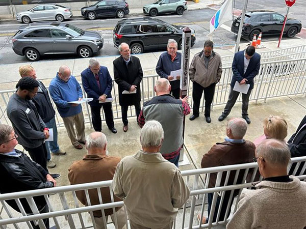 Boardman and Youngstown and Boardman Members of the community and the Boardman-Youngstown Kiwanis Club gathered at the YMCA in Downtown Youngstown to dedicate a Peace Pole.