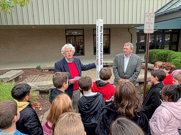 Rotary Club past president George Dull was at Hartwood Elementary for a Peace Pole dedication at the Indiana Township K-5 school on Oct. 22.