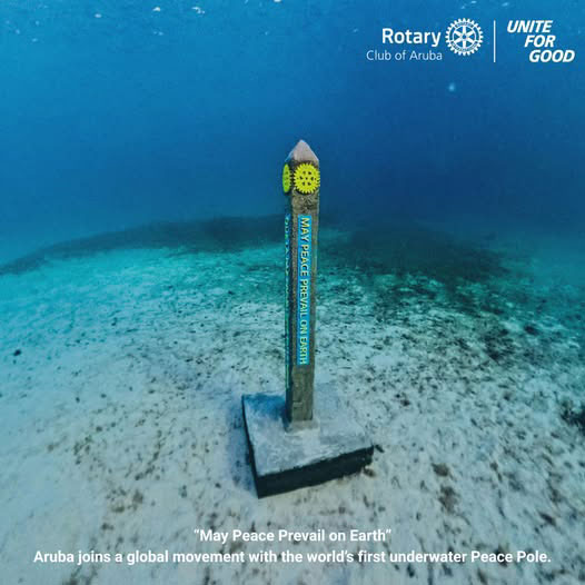 The Rotary Club of Aruba, District 7030 has proudly inaugurated the world’s first registered underwater Peace Pole at Tres Trapi. Carrying the message “May Peace Prevail On Earth” in the four languages, Papiamento, Dutch, English, and Spanish, this Peace Pole connects Aruba to a global network of more than 250,000 Peace Poles around the world.