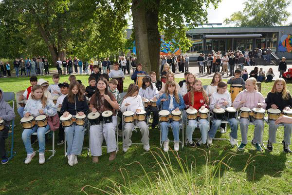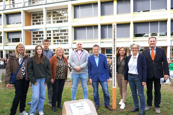 In the presence of the entire student body as well as representatives from politics and administration, Mayor Werner Arndt also said: “This is already the fifth Peace Pole in Marl. But the first at a school.” He further emphasized the significance of the memorial: “Tolerance and cooperation are highly valued in our city. Peace is undoubtedly one of the most precious assets we have in our world. It is the foundation for harmonious coexistence, for prosperity, and for the happiness of every individual. Peace means not only the absence of war, but also the morality of the entire society.” In the languages ​​taught at the school.