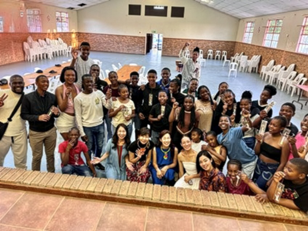 From October 19-22, a group of five Japanese visitors traveled to a small town in the Western Cape province of the Republic of South Africa to visit the Zolani Youth Choir and deepen their connection through song. At a cultural exchange event introducing Japanese culture, they presented Peace Dolls and tabletop Peace Poles inscribed in Xhosa and English, which were received with great joy.