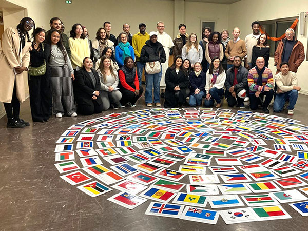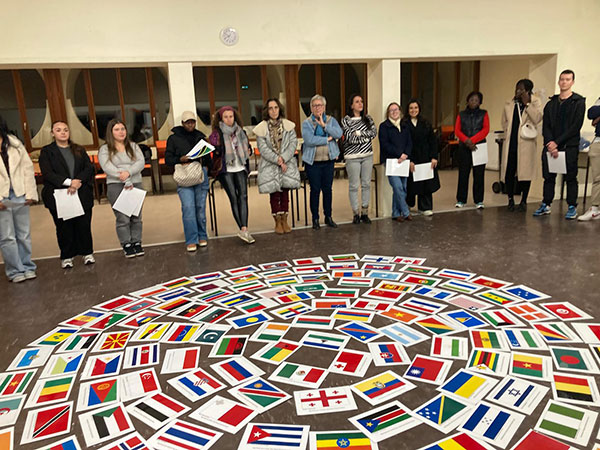 Standing before the flags of the world opened our minds and hearts to all of humanity. Together, we prayed for peace everywhere, holding in our thoughts the 56 countries currently experiencing armed conflict, whether at a local or international level.