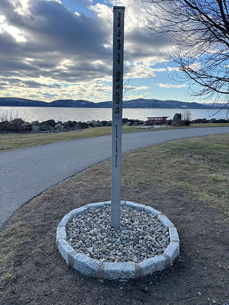The good news is that the Peace Pole has already been installed by Croton’s Department of Public Works, at the point where the path leading into Croton Landing Park bifurcates just past the soccer field. That location was the second of three choices proposed by the Council; the first choice was at Senasqua Park, and the third choice at the Five Corners.