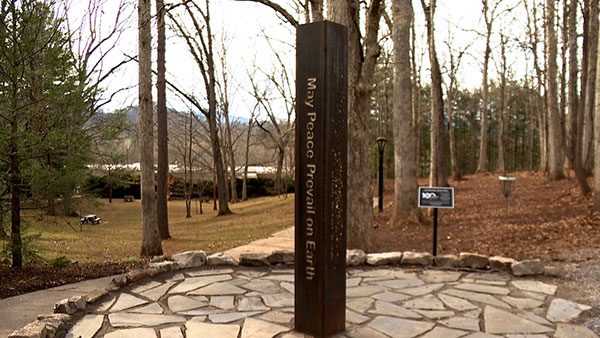 A steel Peace Pole with the message, “May Peace Prevail On Earth,” as a dedication to the college’s 60th anniversary and the Waynesville Rotary Club’s centennial.