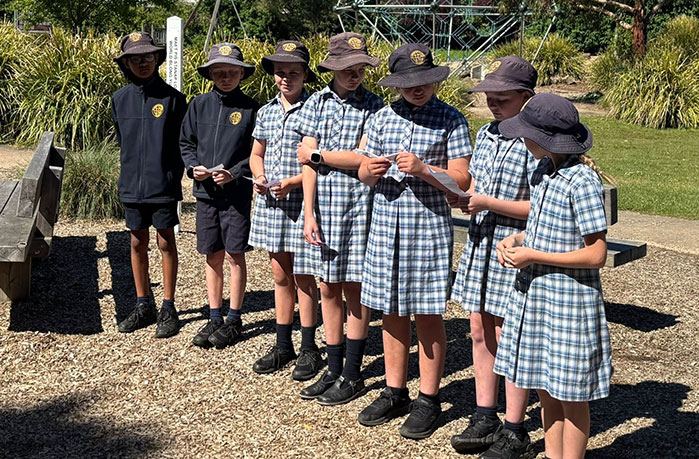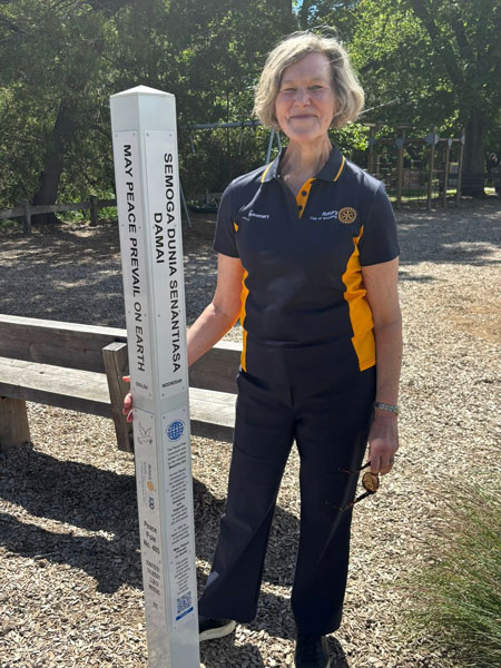Students from St. Ambrose Primary School and Braemar College were honoured to join the Rotary Woodend Peace Pole Ceremony at their beautiful local children’s park! Together, they celebrated the global message, “May Peace Prevail on Earth,” with readings in English, Dja Dja Wurrung, and Bislama (Vanuatu).