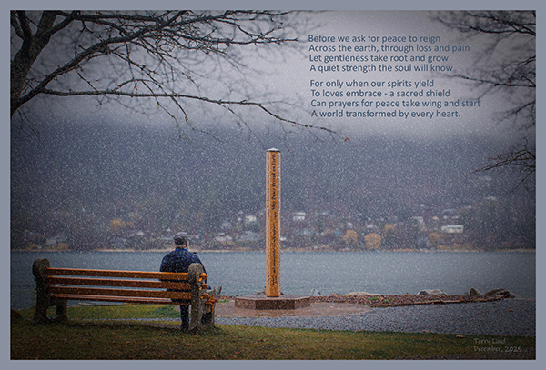 The City of Nelson’s maintenance department donated and poured the concrete pads that the peace pole stands on.