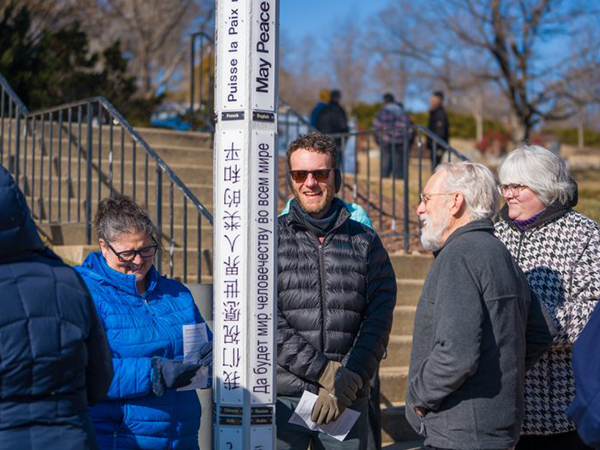 Following the convocation, a ceremony on Thomas Plaza rededicated the EMU Peace Pole with a vision for peace, justice, and shalom on Earth, including all living things (represented by a new plaque featuring animal prints). The Peace Pole was recently resealed and painted and has newly installed “May Peace Prevail On Earth” plaques.