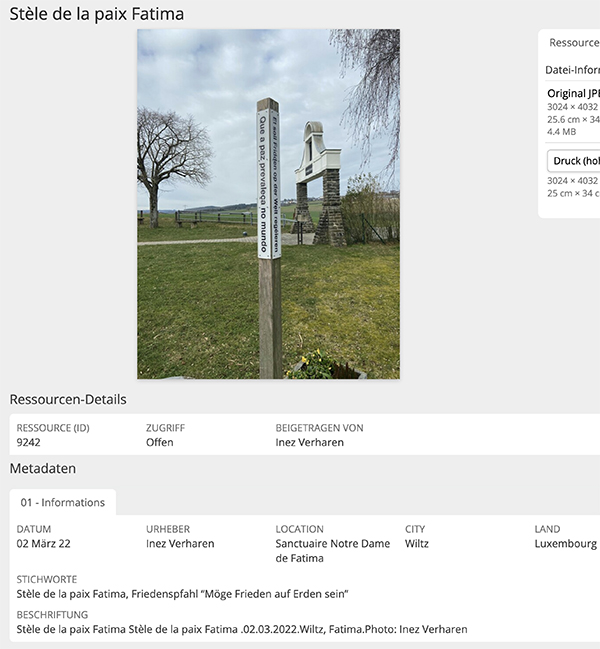 Peace Pole in Fatima Sanctuary of Wiltz in Luxembourg