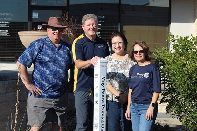 The Rotary Club of Killeen Heights commemorated the 121st birthday of Rotary International by installing a Peace Pole at the corner of Gray Street and Avenue D in downtown Killeen, reinforcing the organization’s longstanding commitment to service and global unity.